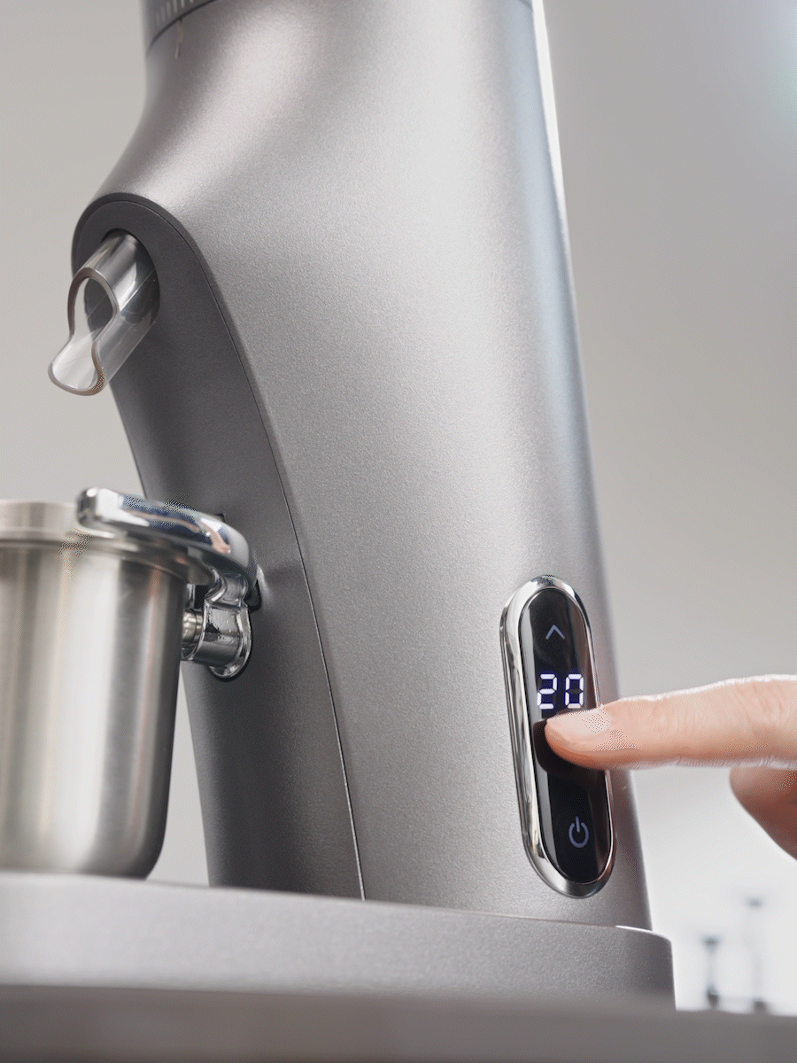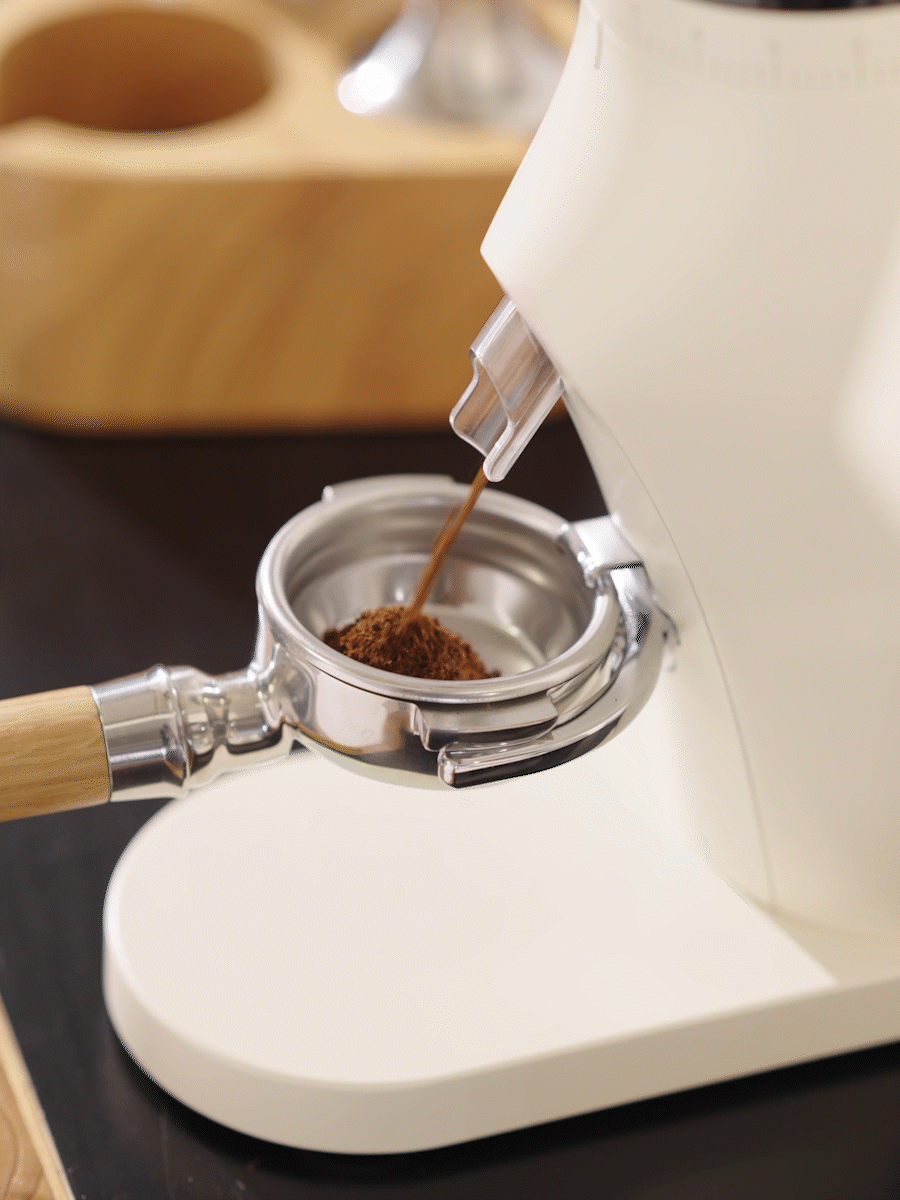 Tap the microswitch with a Gemilai 58mm portafilter, allow the grinds to fall directly into the filter holder