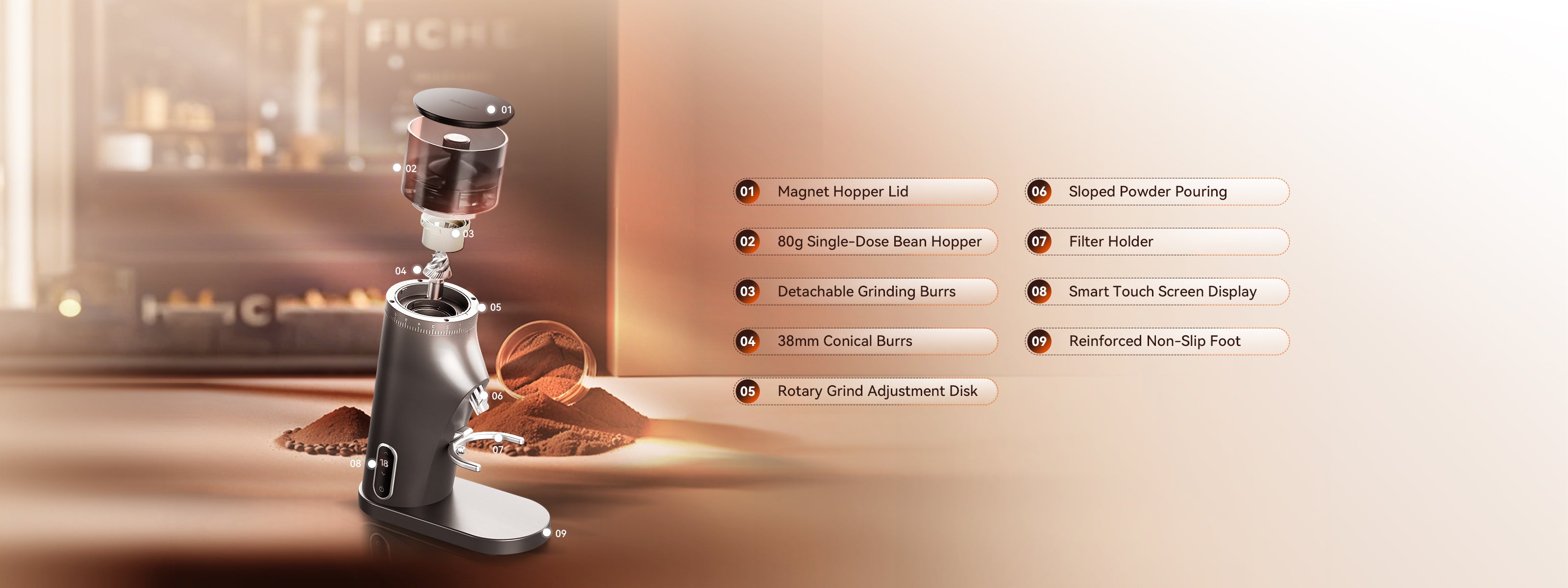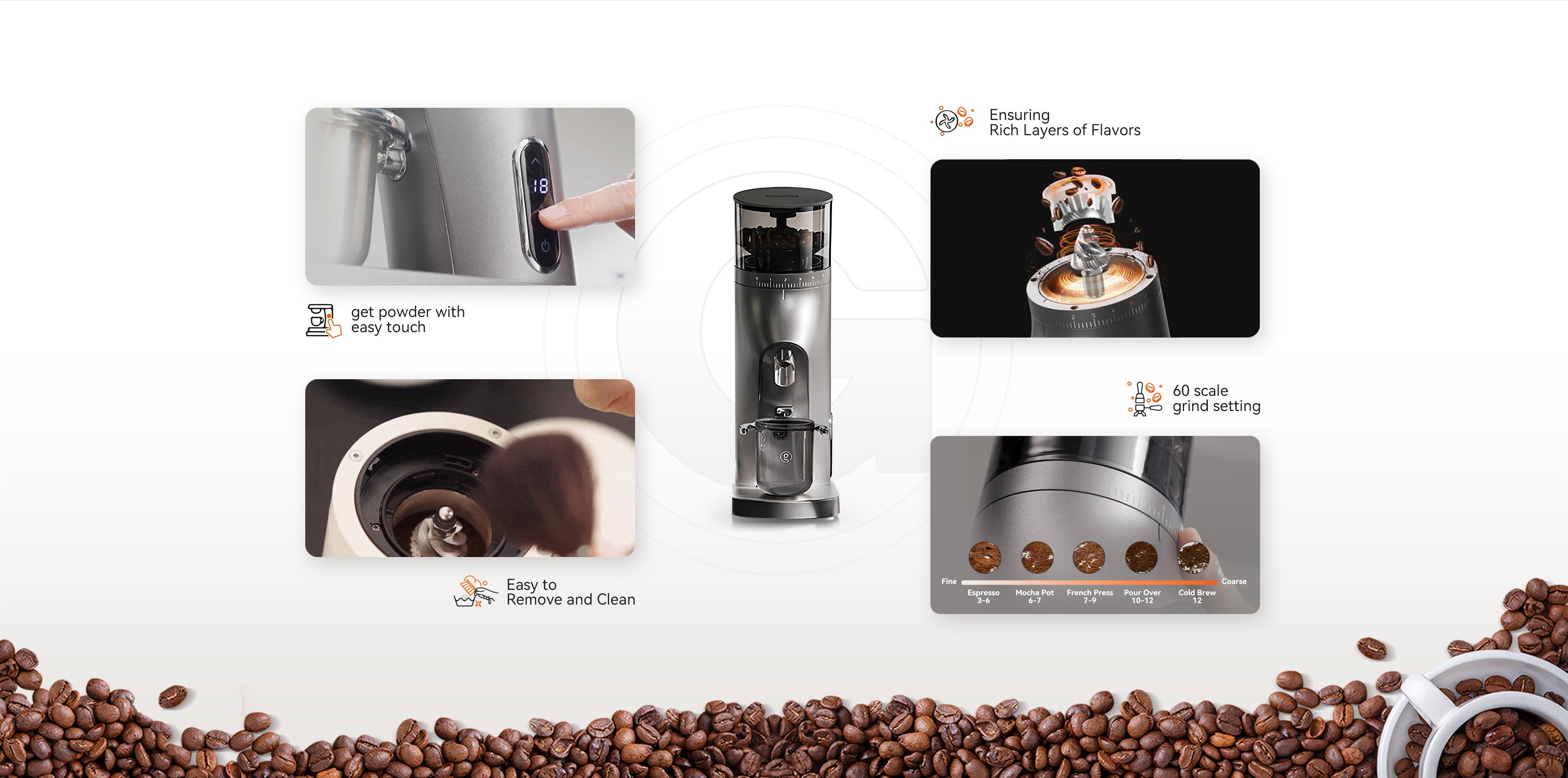 Stepless rotary adjustment for versatile uses with various coffee equipment, all within your control