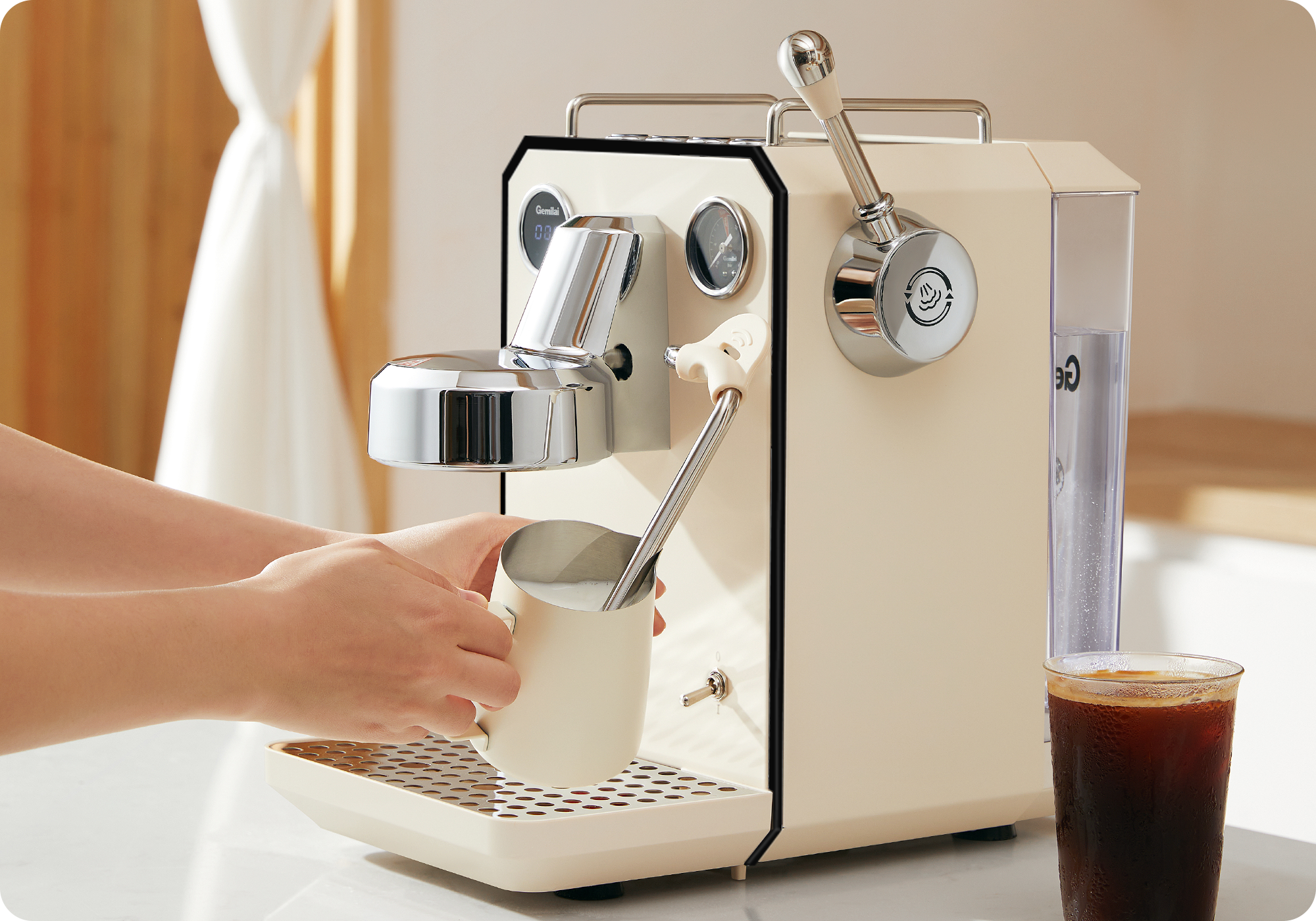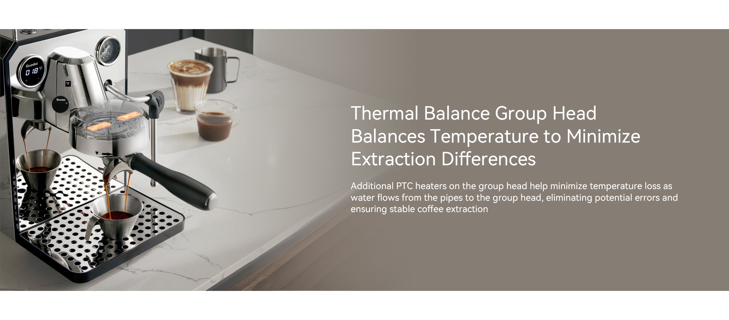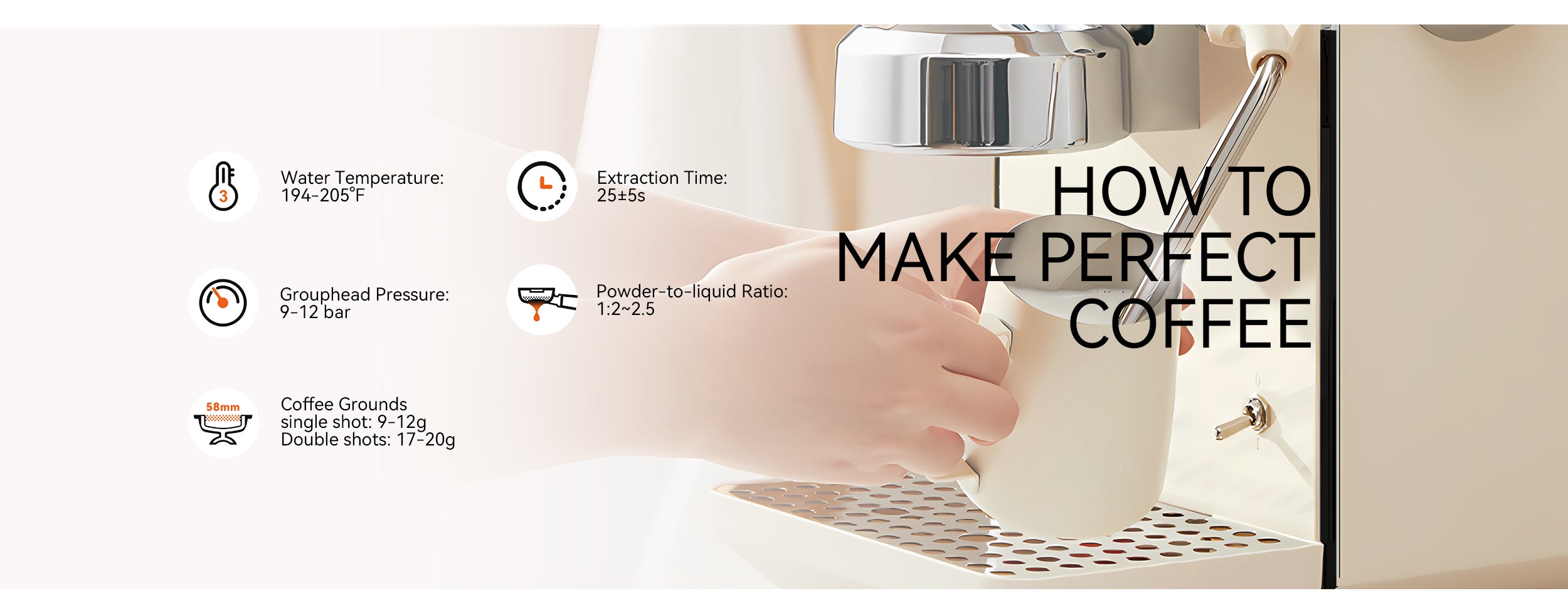 A powerful 1500W instant thermoblock, sufficient and newly upgraded. Improved machine performance, more stable coffee production, and stronger steam