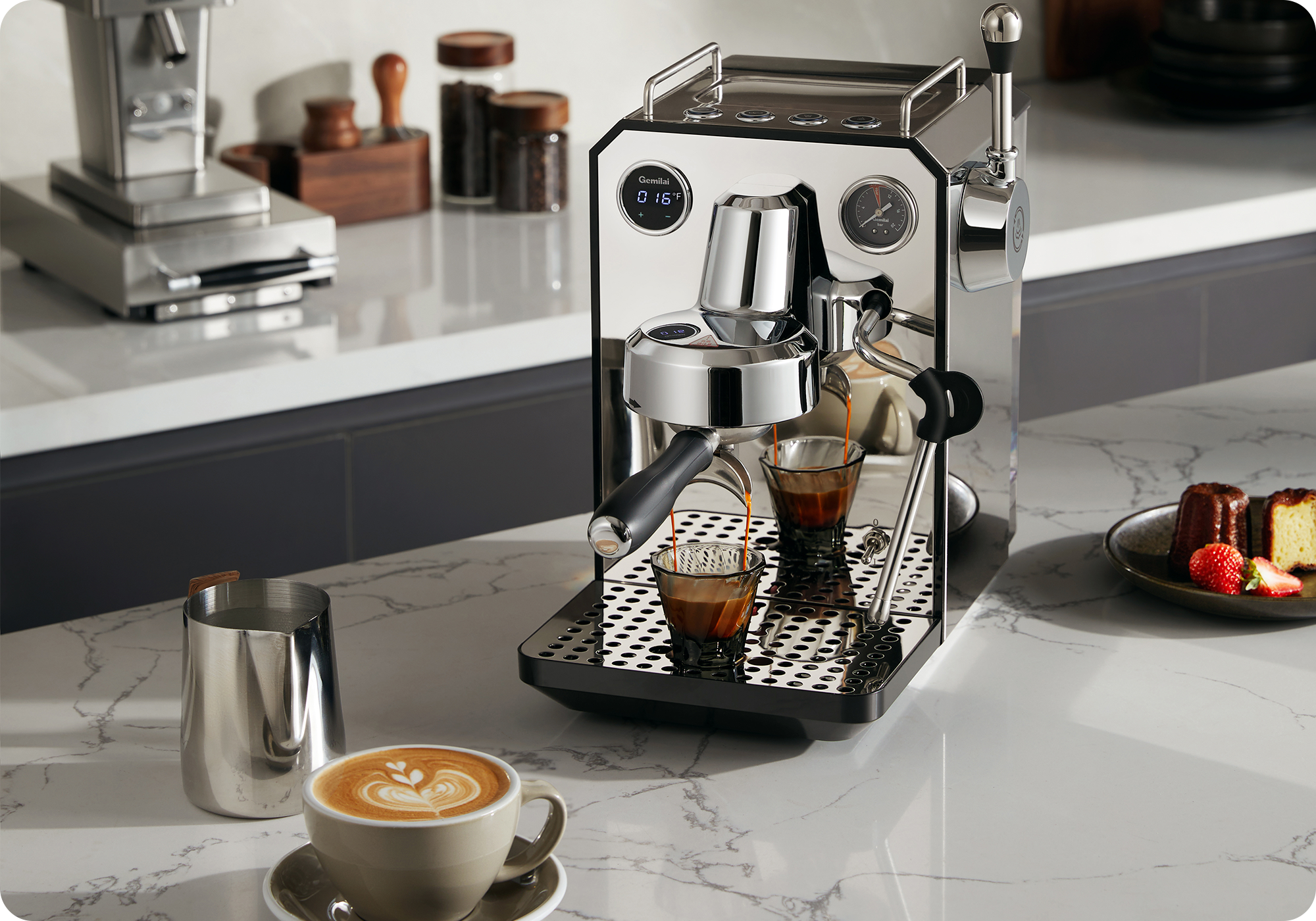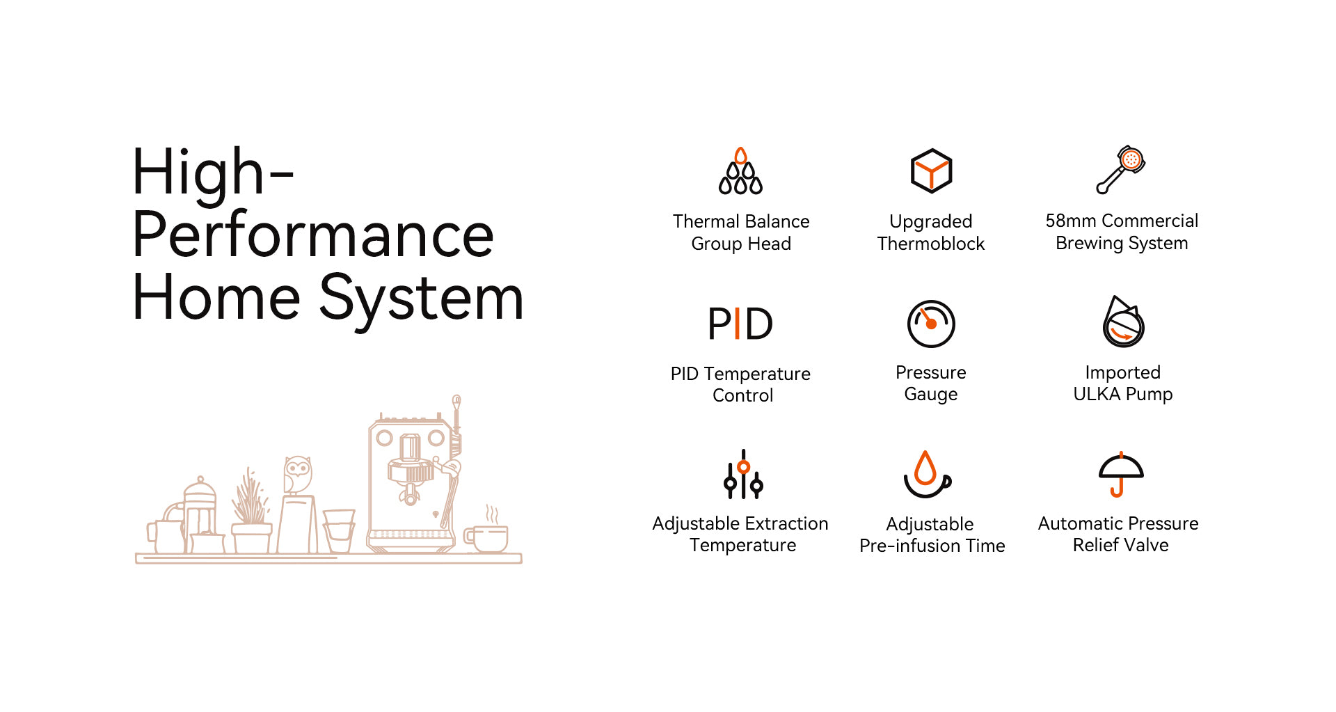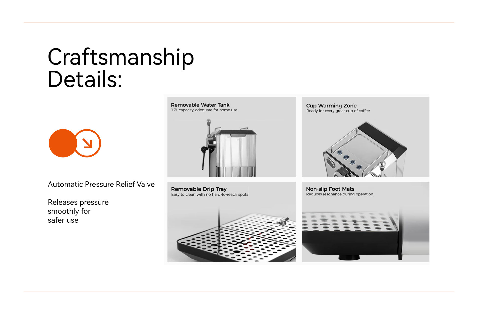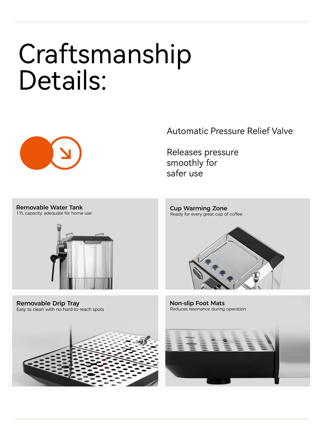 A powerful 1500W instant thermoblock, sufficient and newly upgraded. Improved machine performance, more stable coffee production, and stronger steam