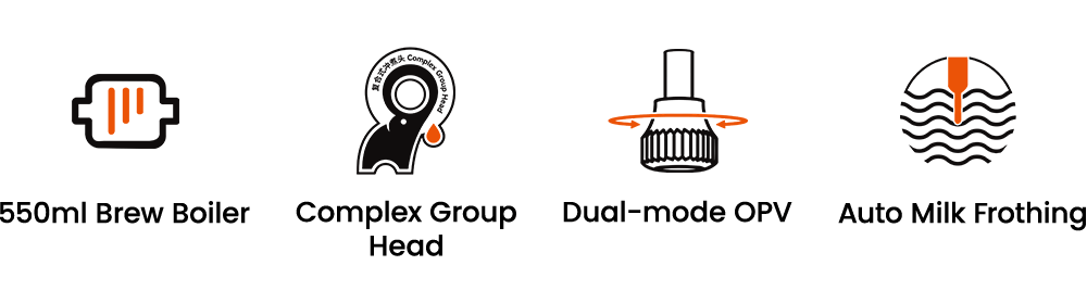 - Patented complex group head & 550ml brew boiler ensure stable, café-quality extraction with a 58mm commercial system.